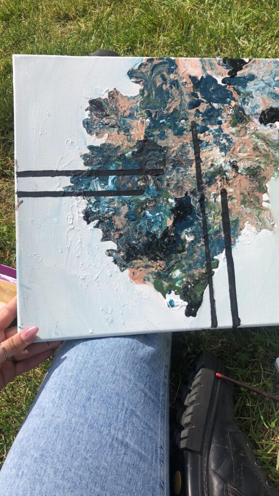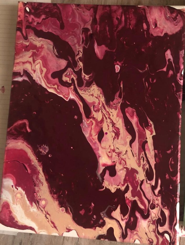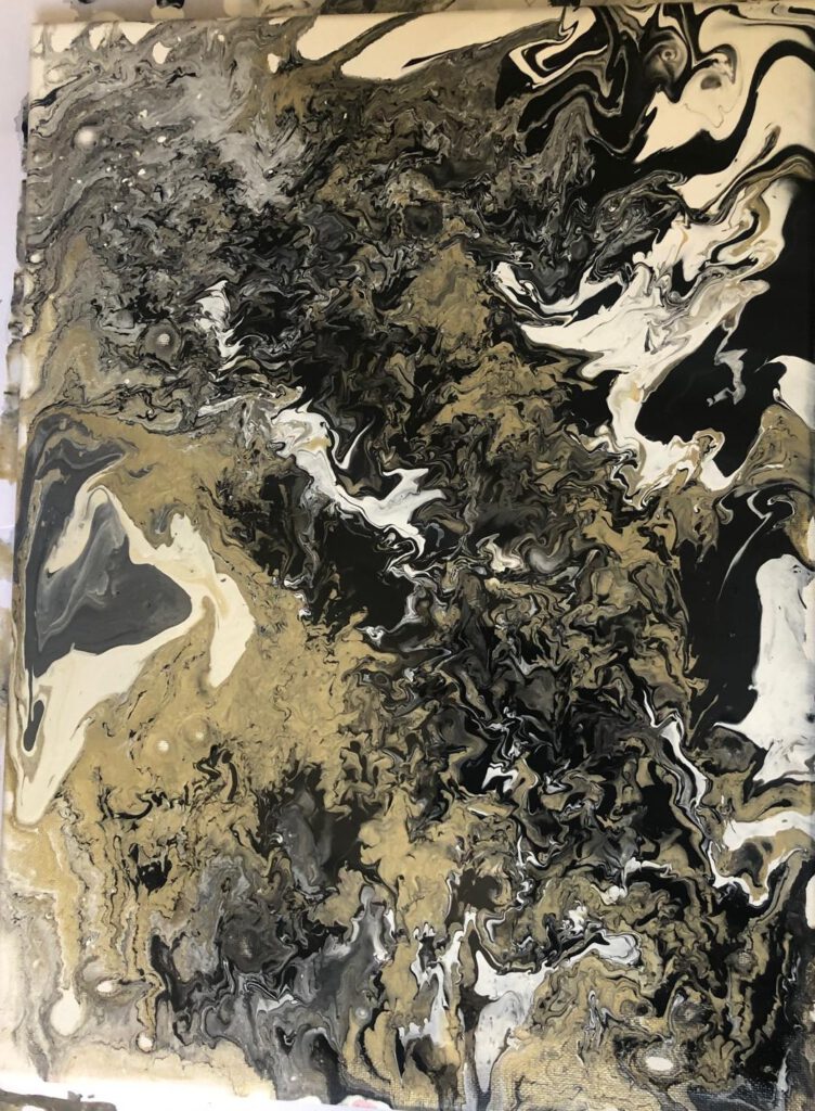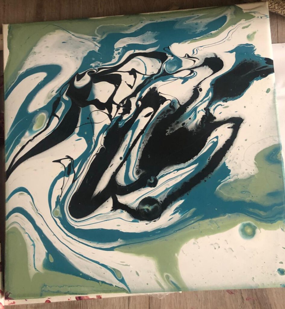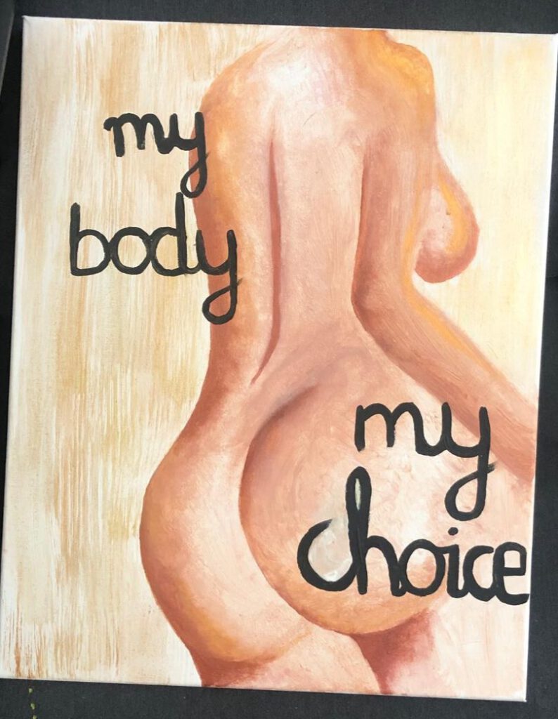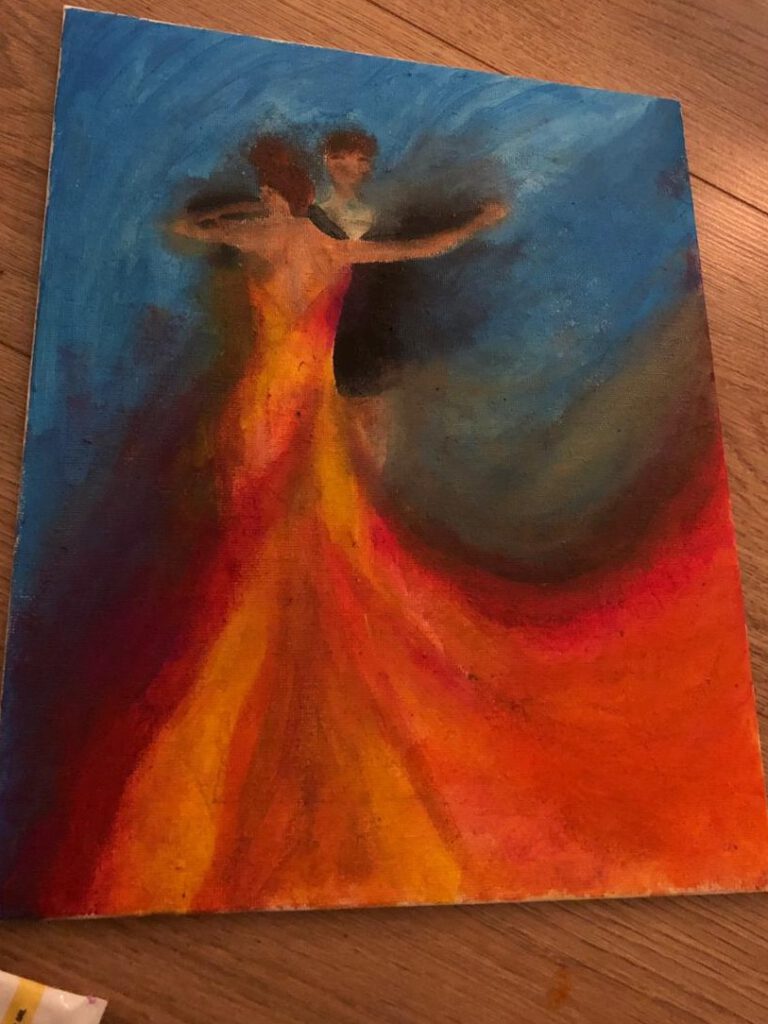 Dieses großformatige Acrylgemälde (60×100 cm) zeigt eine abstrakte Darstellung des menschlichen Körpers. In fließenden Linien und organischen Formen entsteht eine Gestalt, die zugleich körperlich präsent und skulptural wirkt – fast wie eine Statue aus Farbe.