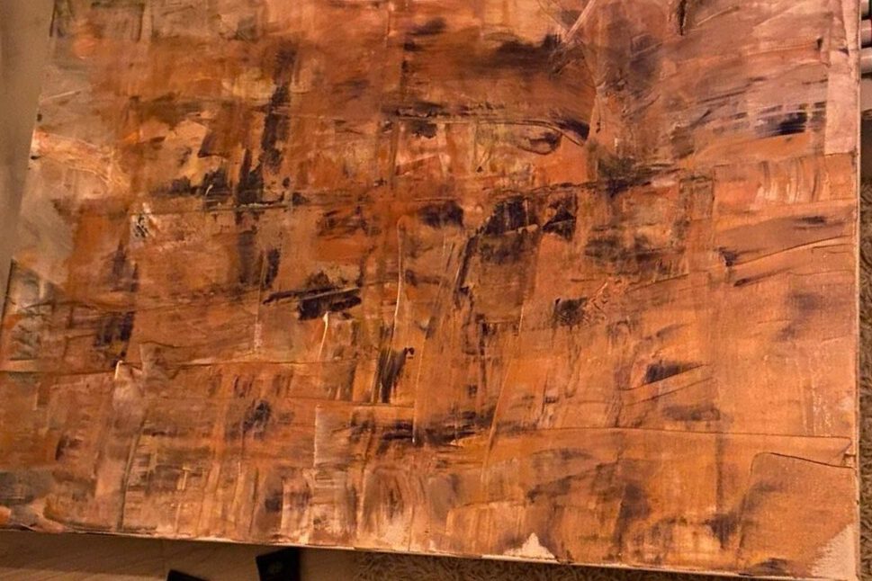 Warme Erdtöne treffen auf tiefes Blau und Dunkelrot, wodurch ein spannender Kontrast aus Stärke und Sinnlichkeit entsteht. Das Werk vereint Bewegung und Ruhe, Oberfläche und Tiefe – ein visuelles Spiel zwischen Figur und Form, das den Blick immer wieder neu fesselt.
