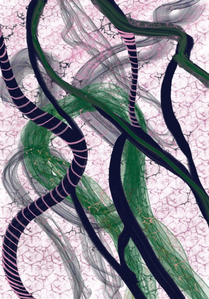 Dieses Bild zeigt die Bewegung des Lebens – ein Geflecht aus Wegen, Energien und Gedanken, die sich kreuzen, verflechten und wieder lösen. „Ver-Wirrung“ ist hier nicht nur Chaos, sondern ein Zustand des Übergangs, in dem Neues entstehen kann. In der Unordnung liegt die Kraft zur Veränderung.